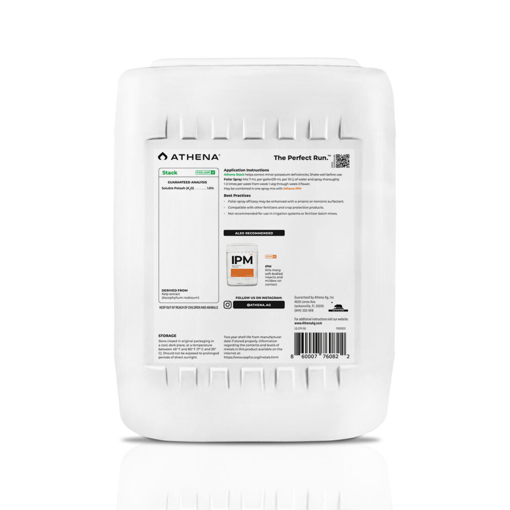 Athena Stack is a natural plant nutrient made from premium kelp extract. This product supports plant growth, transition, and flowering through readily available nutrients, and provides critical building blocks to optimize conditions for better tolerance against abiotic stress. When used as a foliar or root drench, Athena Stack helps correct minor potassium deficiencies..