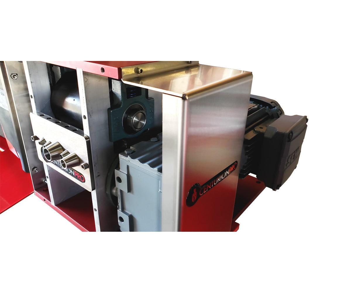 The HP1 comes with a bucker stand and table-top set-up legs included for added value and versatility. With 5-hole sizes, the HP1 accepts wet or dry stems up to 3/4” and can buck up to 175 pounds (up to 35 lbs/hr dry) per hour, replacing 5-7 human workers. When combined with the high productivity of the CenturionPro trimming machines, you’ll get the highest capacity harvesting system in the world! The HP1 comes complete with a 0.75 HP gear driven motor with variable speeds to provide unsurpassed power and adjustability. Thanks to the variable speed controls, both wet and dry products can be processed with ease! The system is easy to set up and is made of stainless steel and anodized aluminum making it robust as well as easy to clean. The HP1 plugs into a 110-volt, 15-amp circuit – EU/AUS Compatible. Backed by a 5 years warranty. The HP1 bucker is simple, powerful, and effective and will process product at an unprecedented rate.