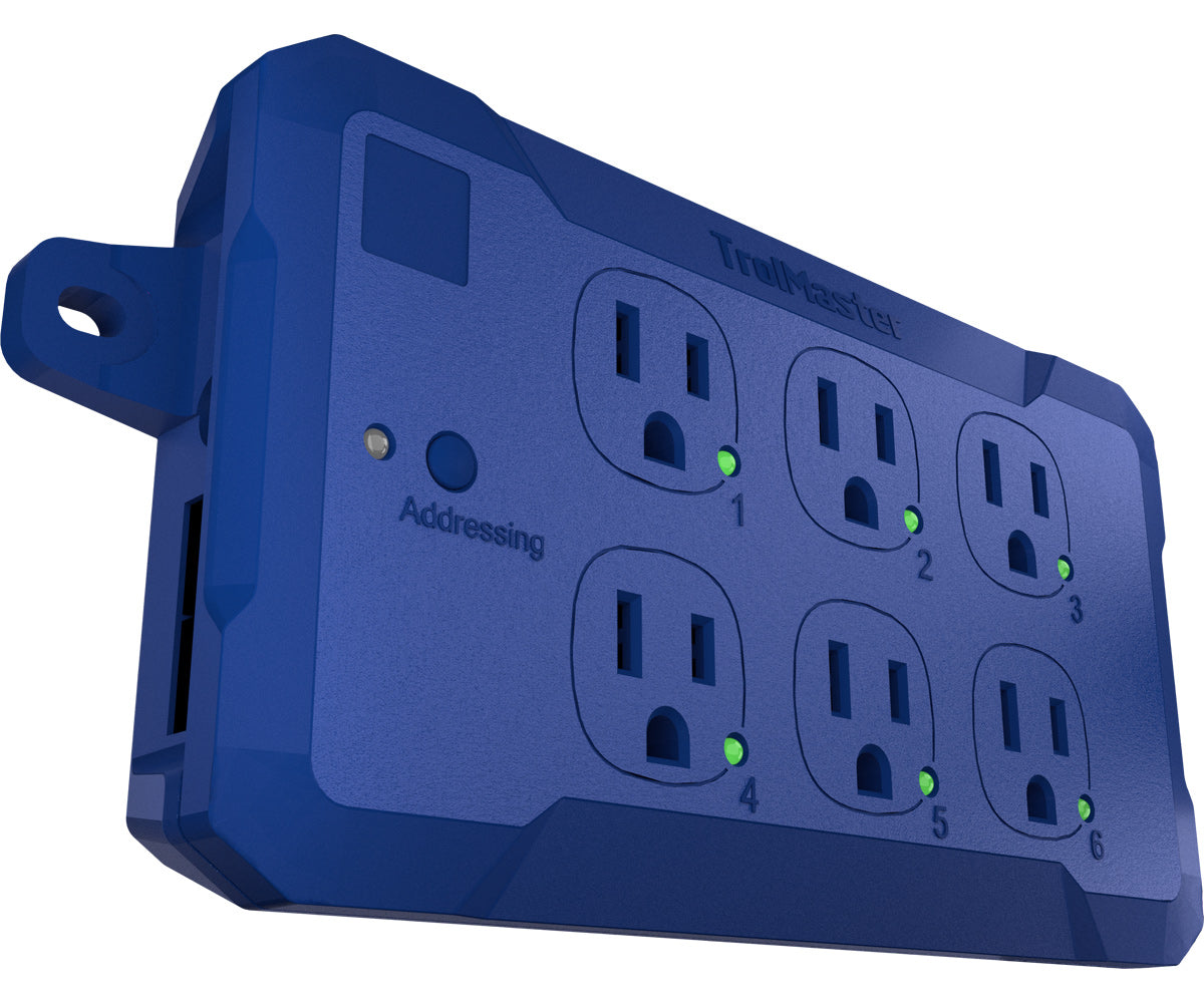 TrolMaster's OA6-110 control board is designed to control small 110V pump or solenoid valves (less than 1.5 amps). The OA6-110 has 6 separately controlled 120 volt outlets. Each has an LED indicator to show whether the outlet is On or Off. Up to (5) of the OA6-110 modules can be connected to a single Aqua-X.